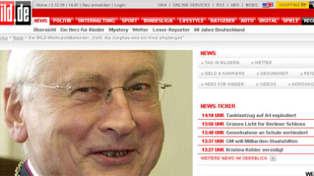 Wer liebt es nicht, jeden Tag im Dezember ein Türchen seines Adventskalenders zu öffnen? Die "Bild"- Zeitung hat dieses Jahr einen eher ungewöhnlichen Kalender entworfen: Jeden Tag schreiben bekannte Frauen und Männer der evangelischen und katholischen Kirche über ihre Lieblingsstelle aus der Weihnachtsgeschichte.