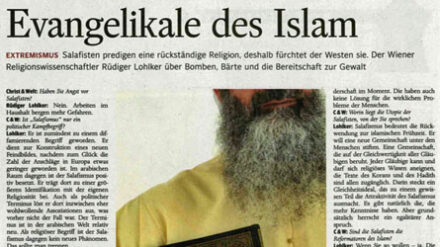 Der Salafismus ist laut dem Islamwissenschaftler Rüdiger Lohlker "gewissermaßen die islamische Ausprägung eines Evangelikalismus". Das hat er in einem Interview mit "Christ und Welt" erklärt. Für den Vorsitzenden der Deutschen Evangelischen Allianz, Michael Diener, ist das Interview eine "Bankrotterklärung" an den seriösen Journalismus.