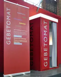 "Willkommen! Sie haben die Gelegenheit, unter zahlreichen Gebeten das für Sie passende zu wählen!" So werden Passanten in Berlin selten begrüßt. Noch seltener wohl durch eine Roboterstimme wie die des Gebetomaten, der derzeit zwischen Imbissbuden und Discountern in den Arminiusmarkthallen in Tiergarten steht. Im Innern des an einen Fotoautomaten erinnernden Geräts kann der Nutzer gegen Einwurf von 50 Cent fünf Minuten lang Gebete aus aller Welt hören – evangelische, katholische, muslimische, hinduistische, solche von Pfingstlern oder sogar von Scientology.