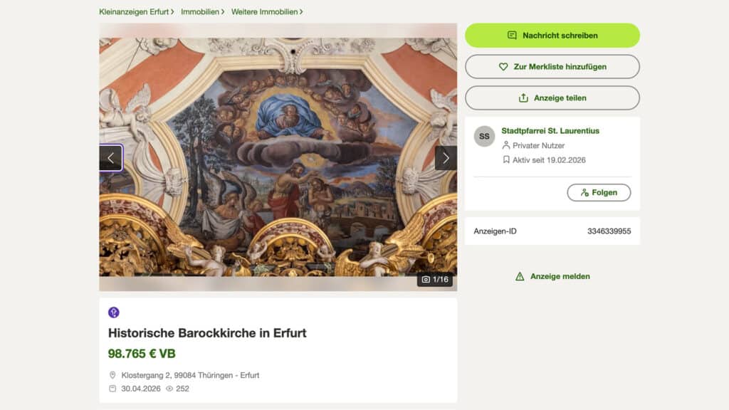 Kirche auf „Kleinanzeigen“ zum Verkauf angeboten