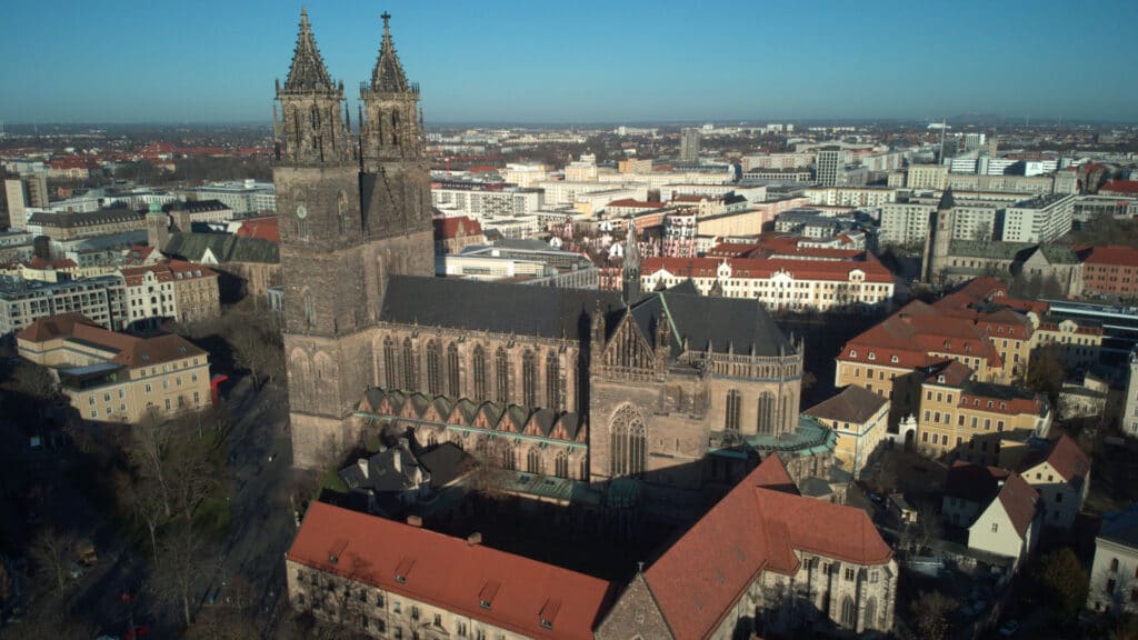 Mit etwa 30 Graffitis wurde der Magdeburger Dom beschmiert. Rassistische oder politische Motive seien laut der Evangelischen Kirche Mitteldeutschland aber nicht erkennbar.