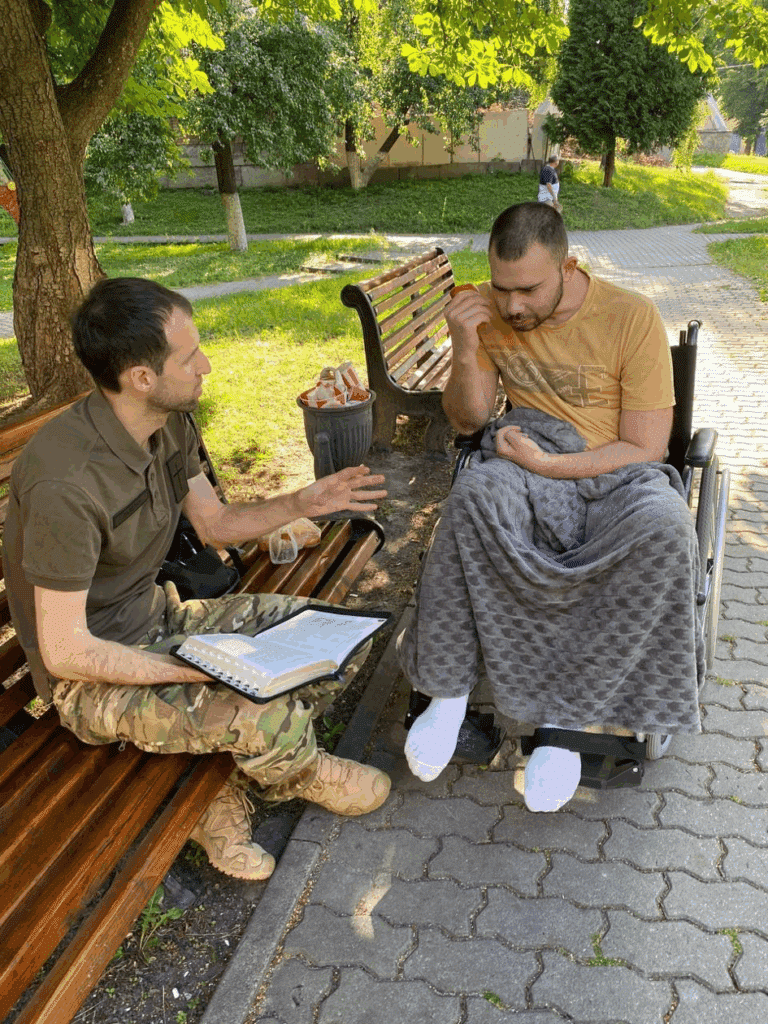 Eugen: Gott sei Dank, blieben wir vor physischer Gewalt bewahrt. Momente der Angst gab es. Ich erinnere mich, dass an manchen Tage sehr viele russische Panzer, Artillerie und Militärfahrzeuge durch unser Dorf gerasselt sind. Sie sind alle nach Irpin weitergezogen und verschonten uns. Doch diese Momente bedeuteten sehr viel Stress. Auch als zwei russische Helikopter direkt über unserem Haus kreisten. In den meisten Momenten durften wir allerdings Gottes Frieden erleben. Besonders das Buch der Psalmen hat mir sehr geholfen. Es hat mich immer wieder mit dem Frieden Gottes erfüllt. Wir ermutigten uns außerdem immer gegenseitig. Besonders für meine ungläubigen Eltern war es eine gute Möglichkeit, von Jesus Christus zu erfahren.